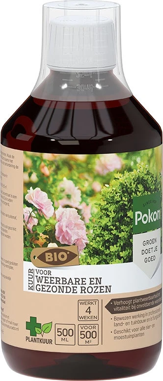Pokon Bio Kuur voor Weerbare en Gezonde Rozen Concentraat is een traditioneel kruidenextract. Dit extract draagt bij aan de verhoging van de weerbaarheid van de plant. Ook werkt het verzorgend, voedend, plantversterkend en ondersteunt het, het natuurlijk herstellend vermogen.