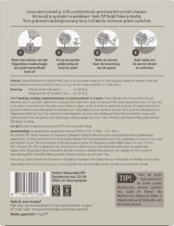 Strooi een dun, gelijkmatig verdeeld laagje over de kale plek. De inhoud van deze verpakking is voldoende voor circa 20 – 30 m².