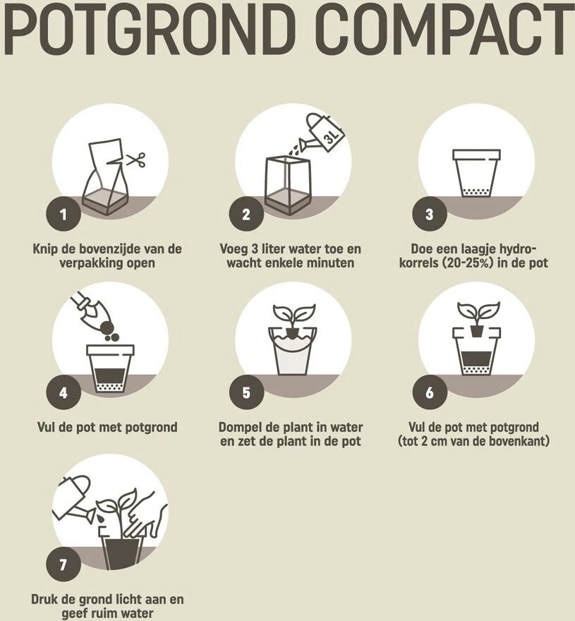 Pokon Potgrond Compact is een potgrond die voor alle planten kan worden gebruikt. Het hoofdbestandsdeel in deze potgrond is gecomposteerde kokosvezel.