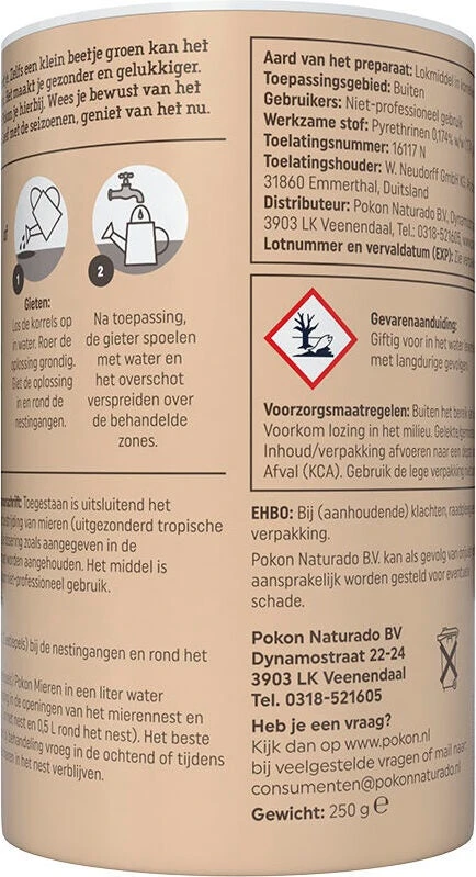 Pokon Tegen Mieren Korrels werkt effectief ter bestrijding van het hele mierennest. Deze korrels kunnen worden gestrooid of opgelost in water.